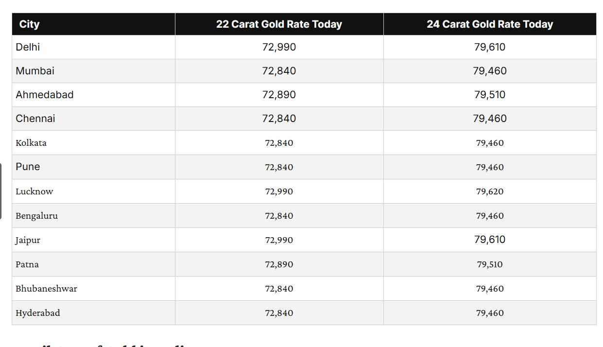 13 दिसंबर, 2024 को विभिन्न शहरों में सोने की कीमतें देखें; (10 रुपये प्रति ग्राम में)