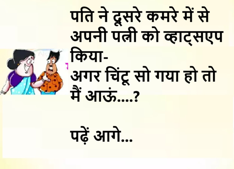 Jokes: पति ने दूसरे कमरे में से अपनी पत्नी को व्हाट्सएप किया- अगर चिंटू सो गया हो तो मैं आऊं? पढ़ें आगे...