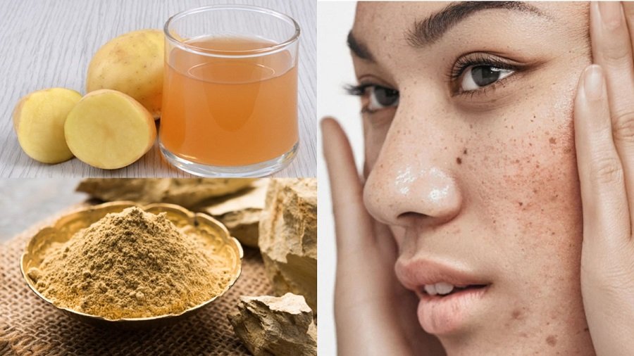 आलू के रस और नींबू के रस को बराबर मात्रा में मिलाएँ। इसे काले धब्बों या पिगमेंटेशन वाले क्षेत्रों पर लगाएँ। यह मिश्रण दाग-धब्बों को हल्का करने और त्वचा की रंगत को एक समान करने में मदद कर सकता है।