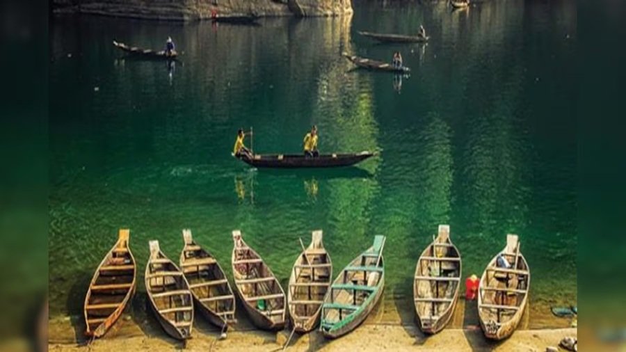 डॉकी (उमंगोट) नदी अपने कांच जैसे, क्रिस्टल-क्लियर पानी के लिए मशहूर है जहाँ नावें हवा में तैरती हुई लगती हैं। यह मेघालय के सबसे यादगार अट्रैक्शन में से एक है।